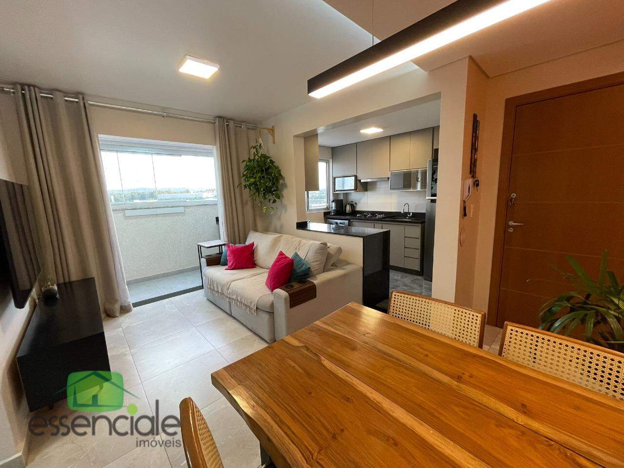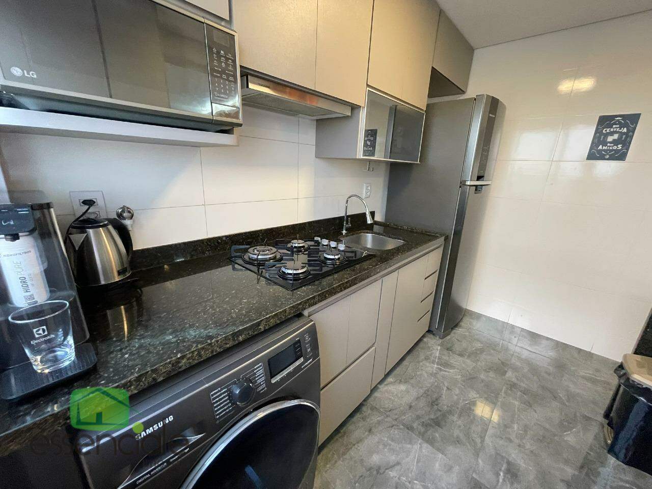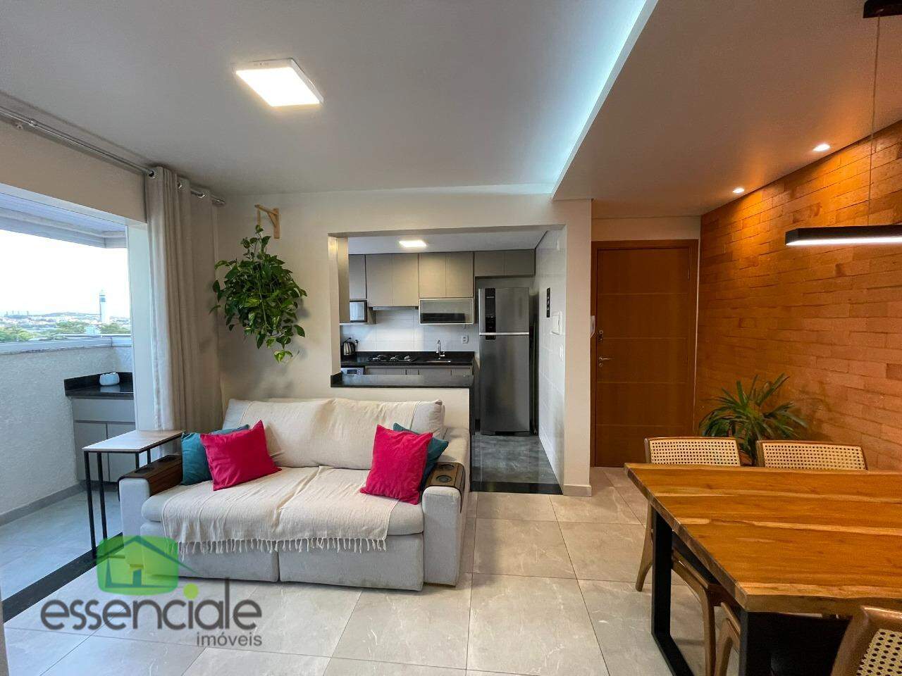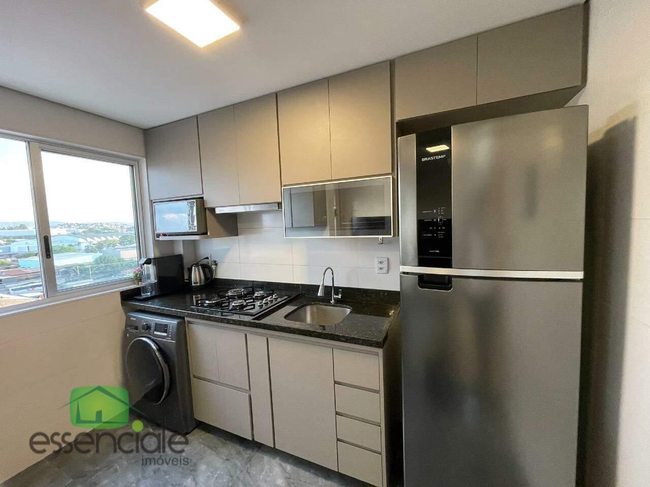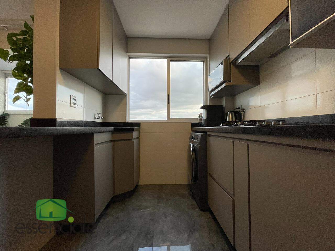 Apartamento em andar alto com vista panorâmica, 2 quartos sendo 1 quarto com suite e ar condicionado.