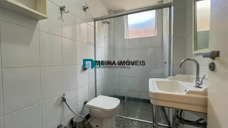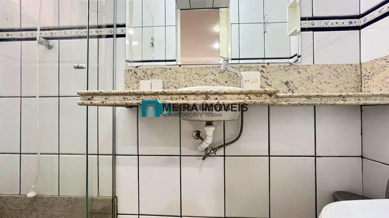 • Banheiro social com bancada em granito, espelho e box em blindex;