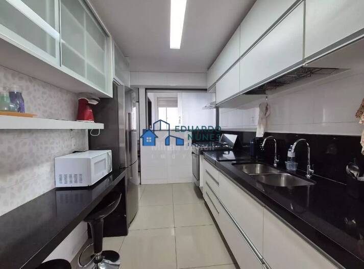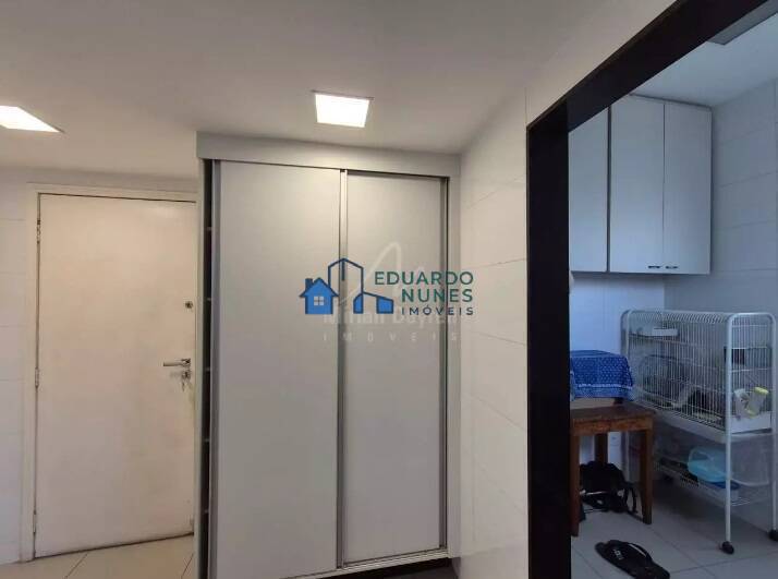 Apartamento com 150 m²; sala com piso em porcelanato, teto em gesso e iluminação planejada; varanda; 4 quartos om armários, sendo 1 suíte com closet, piso em tábua corrida, janelas de alumínio com venezianas, banhos e suíte com box, armários e espelhos, bancada e piso em granito; cozinha ampla com armários, bancada e piso em granito; área de serviço e DCE.